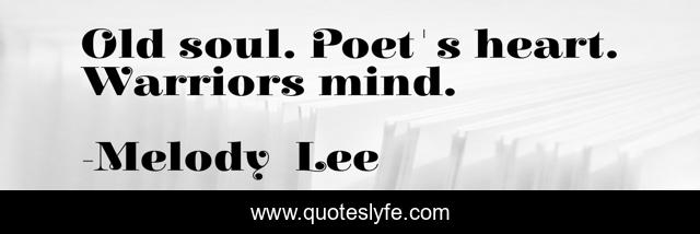 This page presents the quote "Old soul. Poet's heart. Warriors mind.". Author of this quote is Melody Lee. This quote is about poet, warrior, inspiration, poetry, soul,.