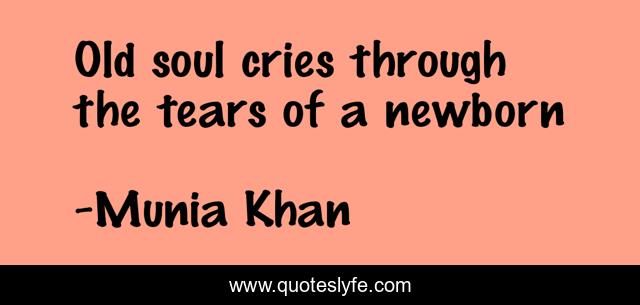 This page presents the quote "Old soul cries through the tears of a newborn". Author of this quote is Munia Khan. This quote is about tears-of-joy, old, tears-crying, cry, child, souls, oldsoul, newborn, cries,.
