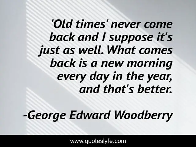 This page presents the quote "'Old times' never come back and I suppose it's just as well. What comes back is a new morning every day in the year, and that's better.". Author of this quote is George Edward Woodberry. This quote is about better, every day, day,.