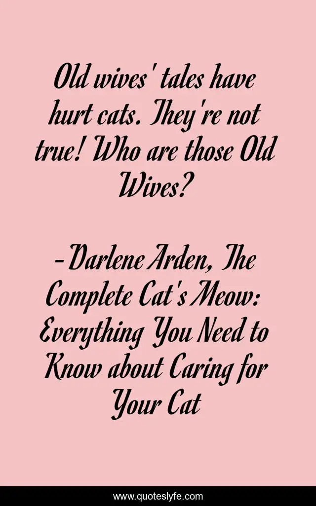 "Darlene Arden, The Complete Cat's Meow: Everything You Need to Know about Caring for Your Cat Quotes." Quoteslyfe.com, 2025. Sat. 06 Dec. 2025. <https://www.quoteslyfe.com/quote/Old-wives-tales-have-hurt-cats-They-222732>.