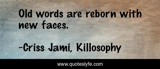 "Criss Jami, Killosophy Quotes." Quoteslyfe.com, 2025. Mon. 08 Dec. 2025. <https://www.quoteslyfe.com/quote/Old-words-are-reborn-with-new-faces-12531>.