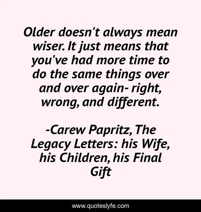 "Carew Papritz, The Legacy Letters: his Wife, his Children, his Final Gift Quotes." Quoteslyfe.com, 2025. Fri. 05 Dec. 2025. <https://www.quoteslyfe.com/quote/Older-doesn-t-always-mean-wiser-It-211845>.