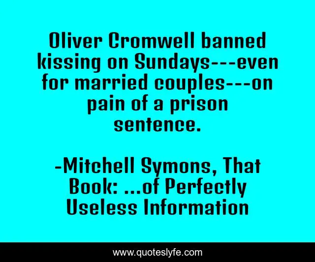 "Mitchell Symons, That Book: ...of Perfectly Useless Information Quotes." Quoteslyfe.com, 2025. Sat. 06 Dec. 2025. <https://www.quoteslyfe.com/quote/Oliver-Cromwell-banned-kissing-on-Sundays-even-251839>.