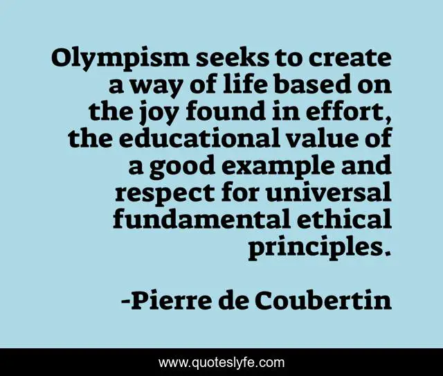 This page presents the quote "Olympism seeks to create a way of life based on the joy found in effort, the educational value of a good example and respect for universal fundamental ethical principles.". Author of this quote is Pierre de Coubertin. This quote is about joy, life, good,.