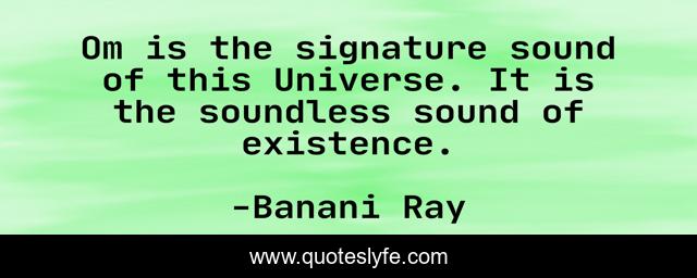 This page presents the quote "Om is the signature sound of this Universe. It is the soundless sound of existence.". Author of this quote is Banani Ray. This quote is about sound, om, universe, cosmic, religion, non-duality, soundless-sound, silence,.