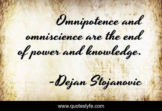 "Dejan Stojanovic Quotes." Quoteslyfe.com, 2025. Sat. 06 Dec. 2025. <https://www.quoteslyfe.com/quote/Omnipotence-and-omniscience-are-the-end-of-30701>.