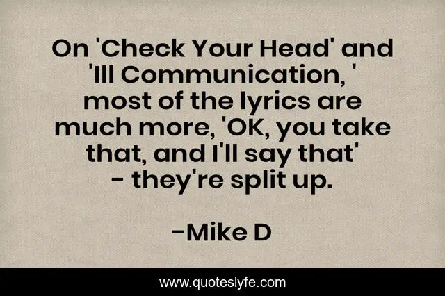 "Mike D Quotes." Quoteslyfe.com, 2025. Fri. 05 Dec. 2025. <https://www.quoteslyfe.com/quote/On-Check-Your-Head-and-Ill-Communication-288419>.