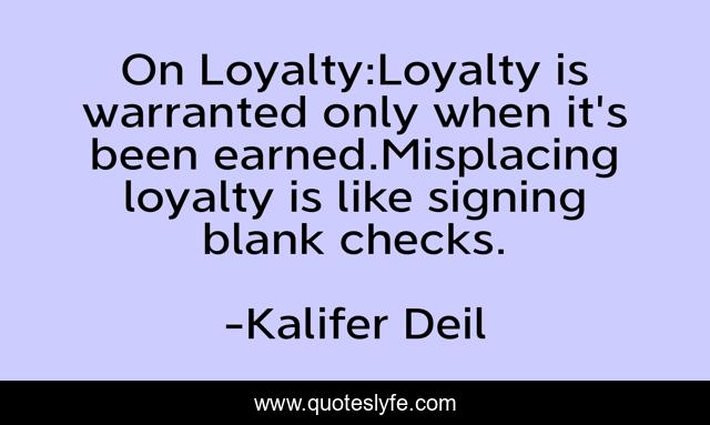 This page presents the quote "On Loyalty:Loyalty is warranted only when it's been earned.Misplacing loyalty is like signing blank checks.". Author of this quote is Kalifer Deil. .