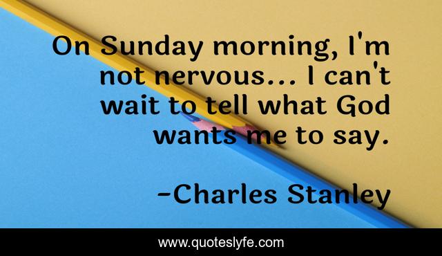 This page presents the quote "On Sunday morning, I'm not nervous... I can't wait to tell what God wants me to say.". Author of this quote is Charles Stanley. This quote is about me, god, wait,.