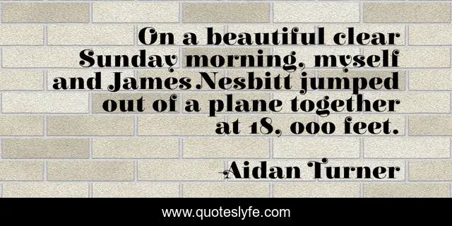 This page presents the quote "On a beautiful clear Sunday morning, myself and James Nesbitt jumped out of a plane together at 18, 000 feet.". Author of this quote is Aidan Turner. This quote is about beautiful, myself, together,.