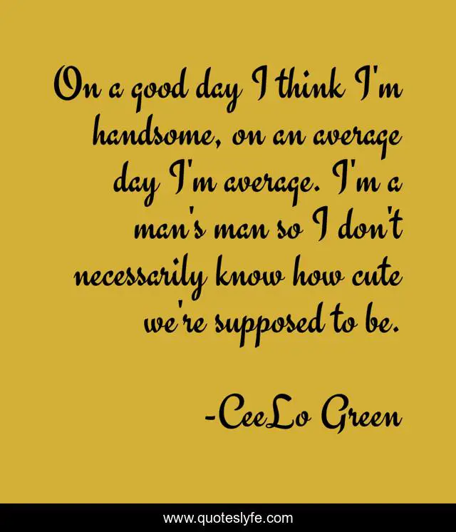 This page presents the quote "On a good day I think I'm handsome, on an average day I'm average. I'm a man's man so I don't necessarily know how cute we're supposed to be.". Author of this quote is CeeLo Green. This quote is about good day, day, man,.