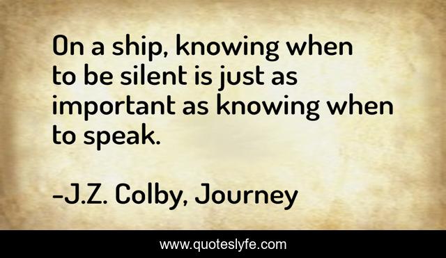 This page presents the quote "On a ship, knowing when to be silent is just as important as knowing when to speak.". Author of this quote is J.Z. Colby, Journey. This quote is about nebador, communication, ship, silence,.