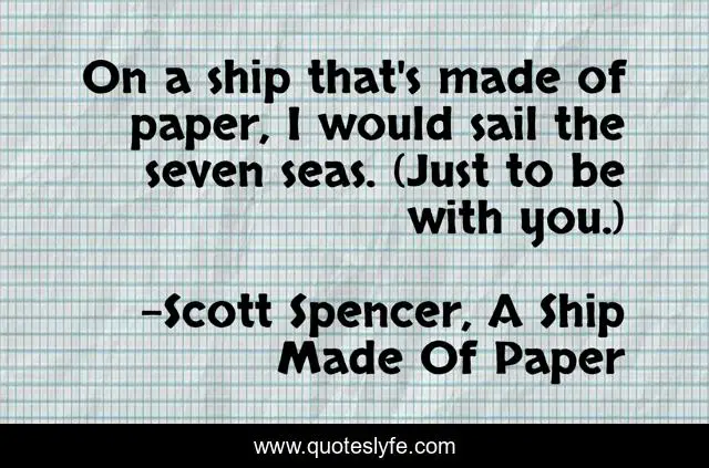 This page presents the quote "On a ship that's made of paper, I would sail the seven seas. (Just to be with you.)". Author of this quote is Scott Spencer, A Ship Made Of Paper. This quote is about romance, love, affection,.
