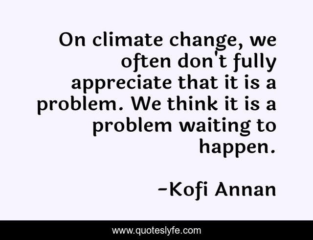 This page presents the quote "On climate change, we often don't fully appreciate that it is a problem. We think it is a problem waiting to happen.". Author of this quote is Kofi Annan. This quote is about waiting, problem, think,.