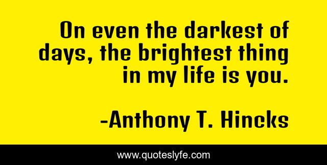 This page presents the quote "On even the darkest of days, the brightest thing in my life is you.". Author of this quote is Anthony T. Hincks. This quote is about life, love, philosophy, days, bright, dark, thing, my-life, brightest,.