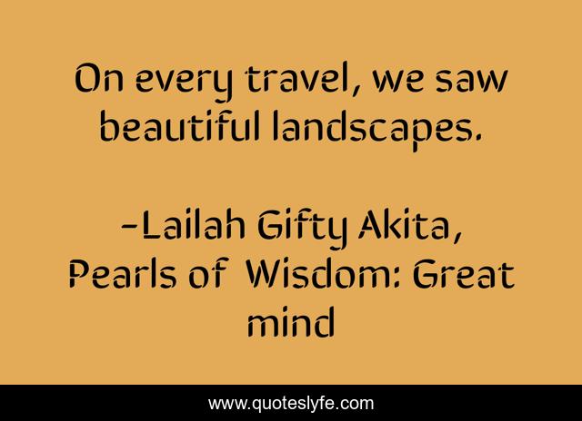 "Lailah Gifty Akita, Pearls of Wisdom: Great mind Quotes." Quoteslyfe.com, 2025. Tue. 09 Dec. 2025. <https://www.quoteslyfe.com/quote/On-every-travel-we-saw-beautiful-landscapes-124135>.