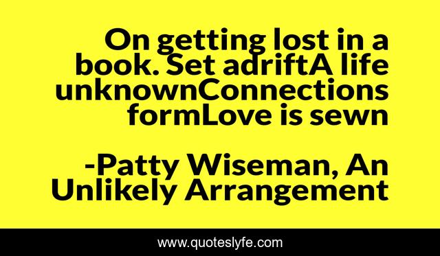 This page presents the quote "On getting lost in a book. Set adriftA life unknownConnections formLove is sewn". Author of this quote is Patty Wiseman, An Unlikely Arrangement. This quote is about read, reading-books, books,.