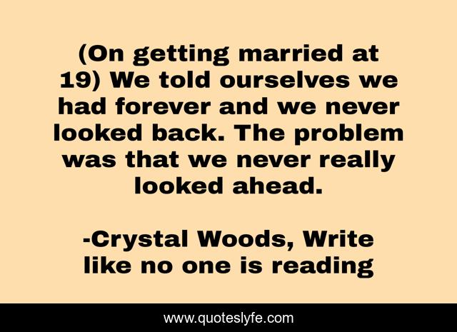 "Crystal Woods, Write like no one is reading Quotes." Quoteslyfe.com, 2025. Sun. 07 Dec. 2025. <https://www.quoteslyfe.com/quote/On-getting-married-at-19-We-told-76686>.