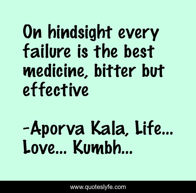 This page presents the quote "On hindsight every failure is the best medicine, bitter but effective". Author of this quote is Aporva Kala, Life... Love... Kumbh.... This quote is about failure, inspirational, enthusiasm,.