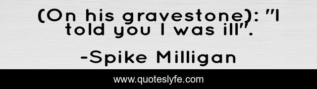 This page presents the quote "(On his gravestone): "I told you I was ill".". Author of this quote is Spike Milligan. This quote is about death, illness, comedy,.