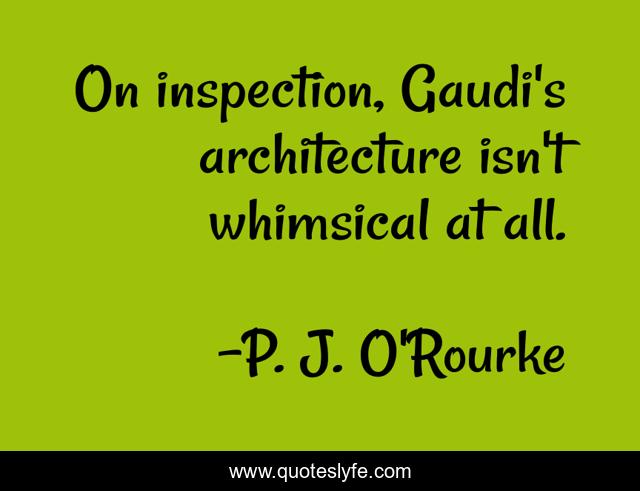 This page presents the quote "On inspection, Gaudi's architecture isn't whimsical at all.". Author of this quote is P. J. O'Rourke. This quote is about whimsical, inspection,.