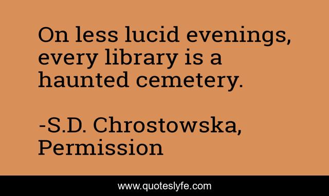"S.D. Chrostowska, Permission Quotes." Quoteslyfe.com, 2025. Fri. 05 Dec. 2025. <https://www.quoteslyfe.com/quote/On-less-lucid-evenings-every-library-is-243362>.
