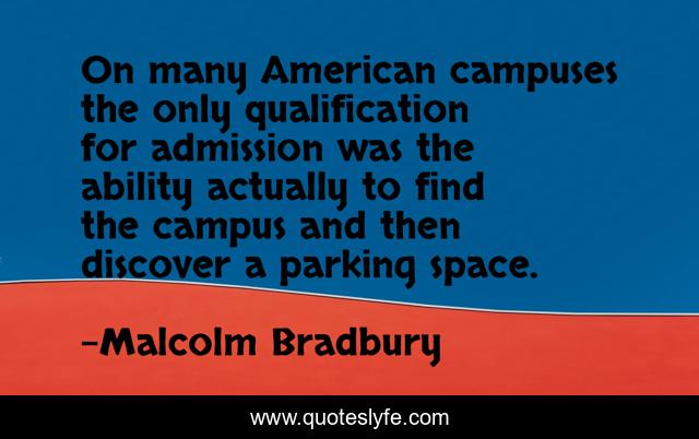 This page presents the quote "On many American campuses the only qualification for admission was the ability actually to find the campus and then discover a parking space.". Author of this quote is Malcolm Bradbury. .