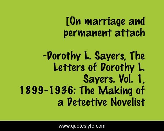 "Dorothy L. Sayers, The Letters of Dorothy L. Sayers. Vol. 1, 1899-1936: The Making of a Detective Novelist Quotes." Quoteslyfe.com, 2025. Fri. 05 Dec. 2025. <https://www.quoteslyfe.com/quote/On-marriage-and-permanent-attach-128090>.