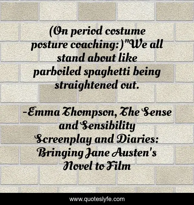 "Emma Thompson, The Sense and Sensibility Screenplay and Diaries: Bringing Jane Austen's Novel to Film Quotes." Quoteslyfe.com, 2025. Tue. 09 Dec. 2025. <https://www.quoteslyfe.com/quote/On-period-costume-posture-coaching-We-all-255773>.