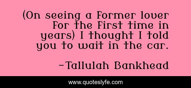 This page presents the quote "(On seeing a former lover for the first time in years) I thought I told you to wait in the car.". Author of this quote is Tallulah Bankhead. This quote is about thought, time,.