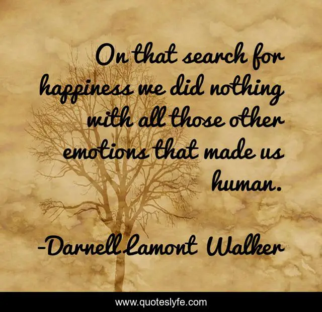 This page presents the quote "On that search for happiness we did nothing with all those other emotions that made us human.". Author of this quote is Darnell Lamont Walker. This quote is about life, searching, emotions, sadness, humanity, happiness,.