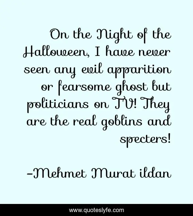 This page presents the quote "On the Night of the Halloween, I have never seen any evil apparition or fearsome ghost but politicians on TV! They are the real goblins and specters!". Author of this quote is Mehmet Murat ildan. .