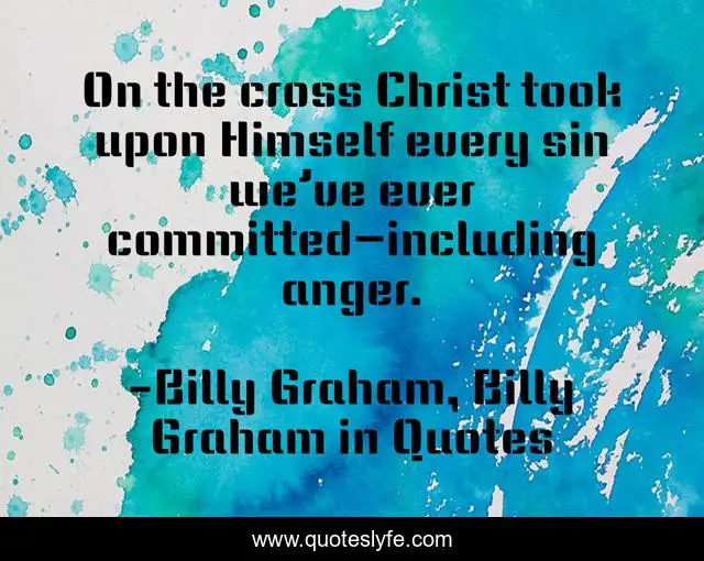 This page presents the quote "On the cross Christ took upon Himself every sin we’ve ever committed—including anger.". Author of this quote is Billy Graham, Billy Graham in Quotes. This quote is about anger, billy-graham,.