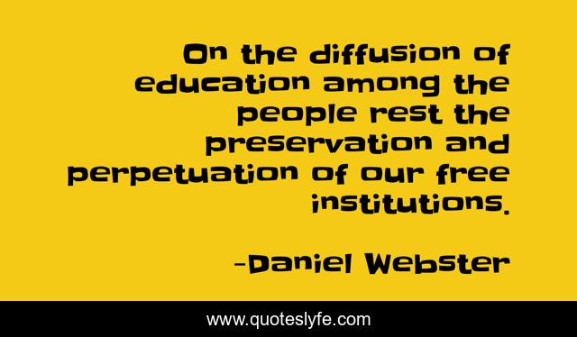 This page presents the quote "On the diffusion of education among the people rest the preservation and perpetuation of our free institutions.". Author of this quote is Daniel Webster. This quote is about free, rest, people,.