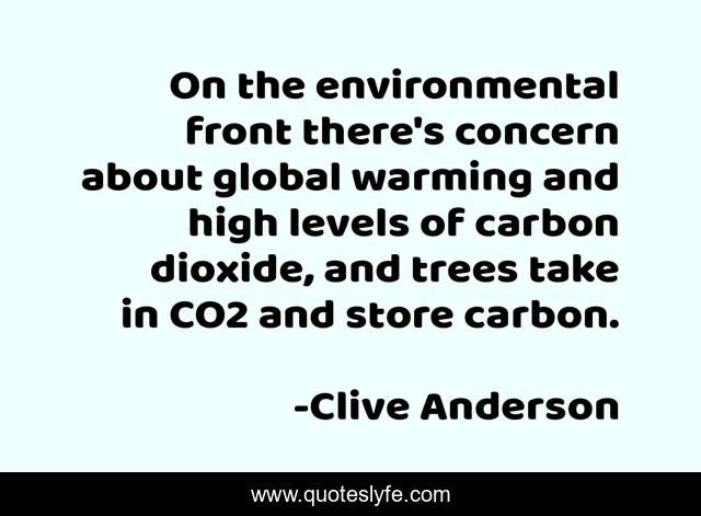 This page presents the quote "On the environmental front there's concern about global warming and high levels of carbon dioxide, and trees take in CO2 and store carbon.". Author of this quote is Clive Anderson. This quote is about trees, global warming,.
