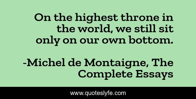 This page presents the quote "On the highest throne in the world, we still sit only on our own bottom.". Author of this quote is Michel de Montaigne, The Complete Essays. This quote is about throne, humility,.