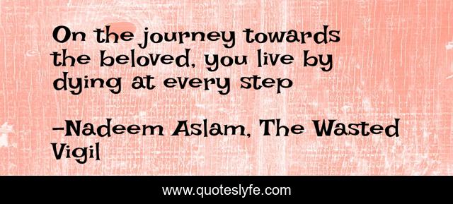 This page presents the quote "On the journey towards the beloved, you live by dying at every step". Author of this quote is Nadeem Aslam, The Wasted Vigil. This quote is about afghanistan, war, history,.