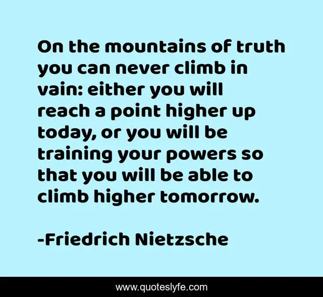 "Friedrich Nietzsche Quotes." Quoteslyfe.com, 2025. Mon. 08 Dec. 2025. <https://www.quoteslyfe.com/quote/On-the-mountains-of-truth-you-can-309858>.