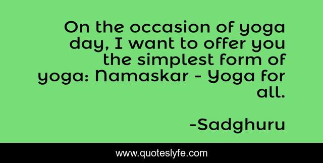This page presents the quote "On the occasion of yoga day, I want to offer you the simplest form of yoga: Namaskar - Yoga for all.". Author of this quote is Sadghuru. This quote is about yoga-inspiration, yoga, namaskar, yoga-practice,.