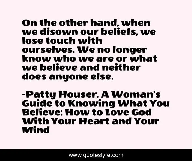 "Patty Houser, A Woman's Guide to Knowing What You Believe: How to Love God With Your Heart and Your Mind Quotes." Quoteslyfe.com, 2025. Fri. 05 Dec. 2025. <https://www.quoteslyfe.com/quote/On-the-other-hand-when-we-disown-230485>.