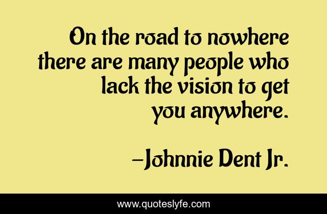 This page presents the quote "On the road to nowhere there are many people who lack the vision to get you anywhere.". Author of this quote is Johnnie Dent Jr.. This quote is about setbacks, failure, discouragement, detours, falsehood,.