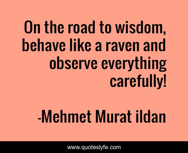 This page presents the quote "On the road to wisdom, behave like a raven and observe everything carefully!". Author of this quote is Mehmet Murat ildan. .