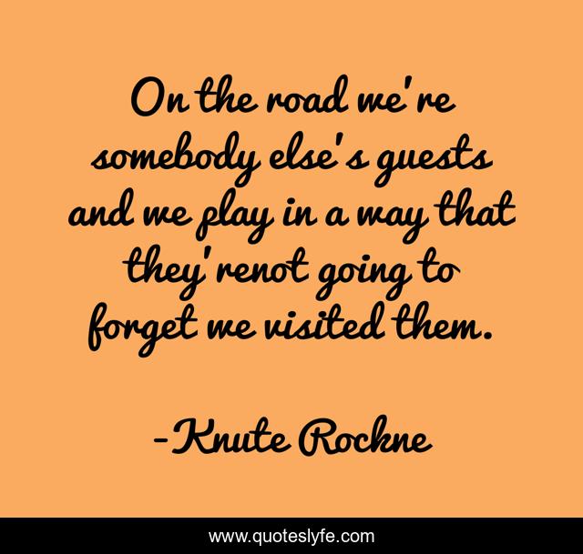 This page presents the quote "On the road we're somebody else's guests and we play in a way that they'renot going to forget we visited them.". Author of this quote is Knute Rockne. .