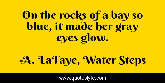 This page presents the quote "On the rocks of a bay so blue, it made her gray eyes glow.". Author of this quote is A. LaFaye, Water Steps. This quote is about blue, gray, eyes, bay, rocks, glow,.