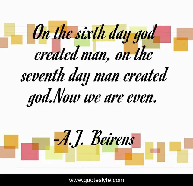 "A.J. Beirens Quotes." Quoteslyfe.com, 2025. Mon. 08 Dec. 2025. <https://www.quoteslyfe.com/quote/On-the-sixth-day-god-created-man-56401>.