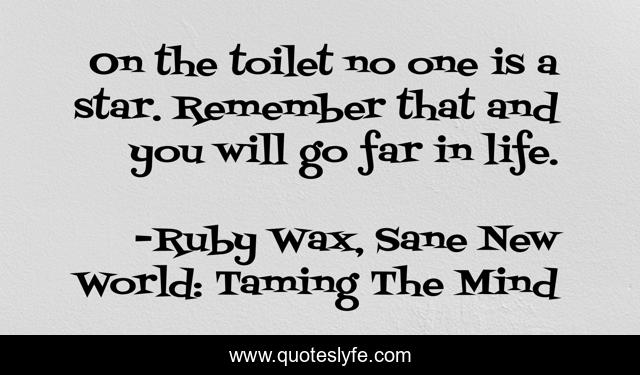 This page presents the quote "On the toilet no one is a star. Remember that and you will go far in life.". Author of this quote is Ruby Wax, Sane New World: Taming The Mind. .