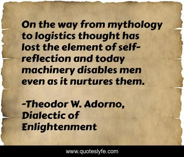 "Theodor W. Adorno, Dialectic of Enlightenment Quotes." Quoteslyfe.com, 2025. Fri. 05 Dec. 2025. <https://www.quoteslyfe.com/quote/On-the-way-from-mythology-to-logistics-163019>.