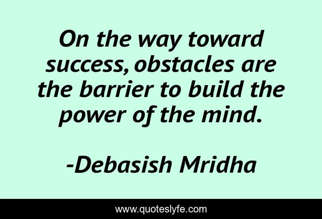 This page presents the quote "On the way toward success, obstacles are the barrier to build the power of the mind.". Author of this quote is Debasish Mridha. This quote is about power-of-the-mind, success, obstacles-of-success, philosophy, debasish-mridha, quotes, inspirational, enthusiasm, debasish-mridha-m-d,.