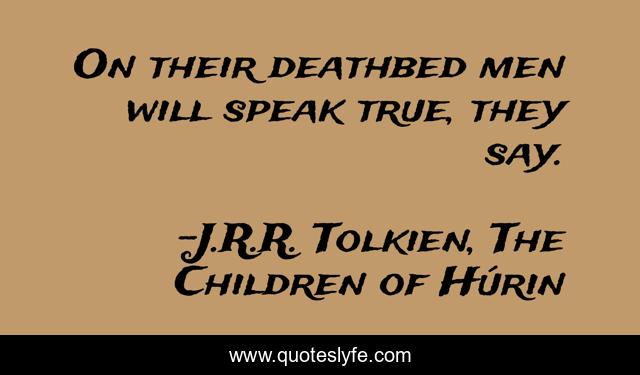 "J.R.R. Tolkien, The Children of Húrin Quotes." Quoteslyfe.com, 2025. Sun. 07 Dec. 2025. <https://www.quoteslyfe.com/quote/On-their-deathbed-men-will-speak-true-21943>.
