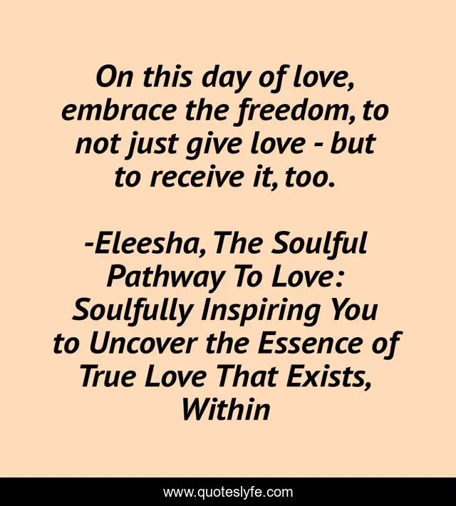"Eleesha, The Soulful Pathway To Love: Soulfully Inspiring You to Uncover the Essence of True Love That Exists, Within Quotes." Quoteslyfe.com, 2025. Sat. 06 Dec. 2025. <https://www.quoteslyfe.com/quote/On-this-day-of-love-embrace-the-205086>.
